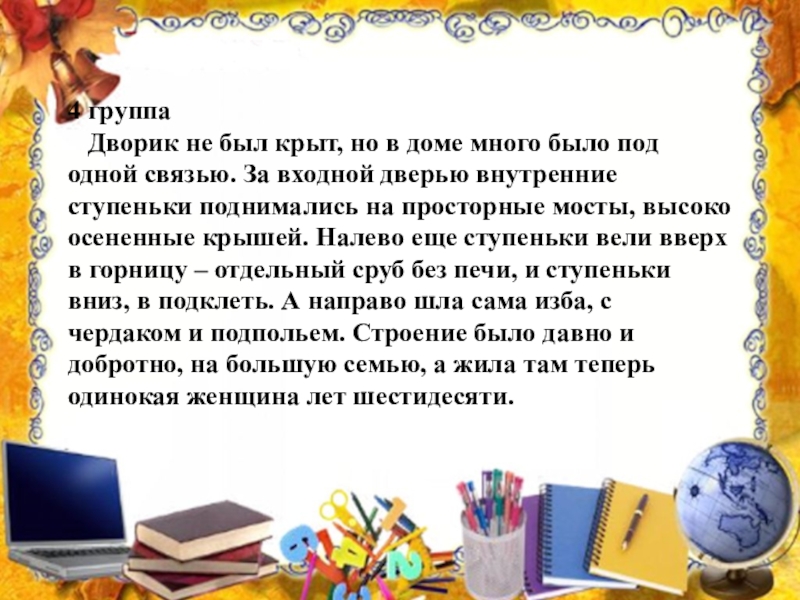 было под одной связью. За входной дверью внутренние ступеньки поднимались на просторные мосты, высоко осененные крышей. Налево еще ступеньки вели вверх в горницу – отдельный сруб без печи, и ступеньки вниз, в подклеть. А направо шла сама изба, с чердаком и подпольем. Строение было давно и добротно, на большую семью, а жила там теперь одинокая женщина лет шестидесяти.