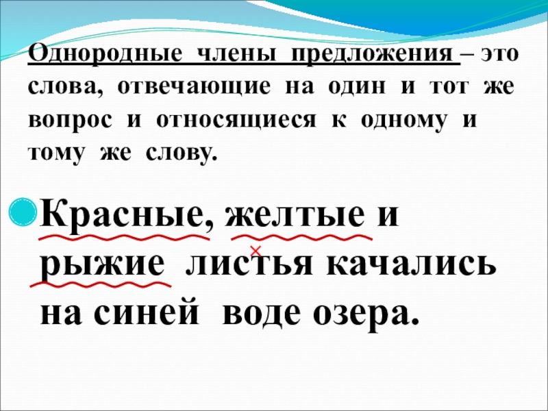 Красные, желтые и рыжие листья качались на синей воде озера.