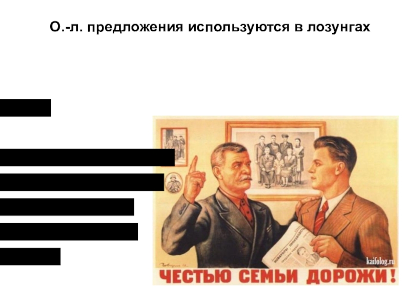 Слайд 9 О.-л. предложения используются в лозунгах