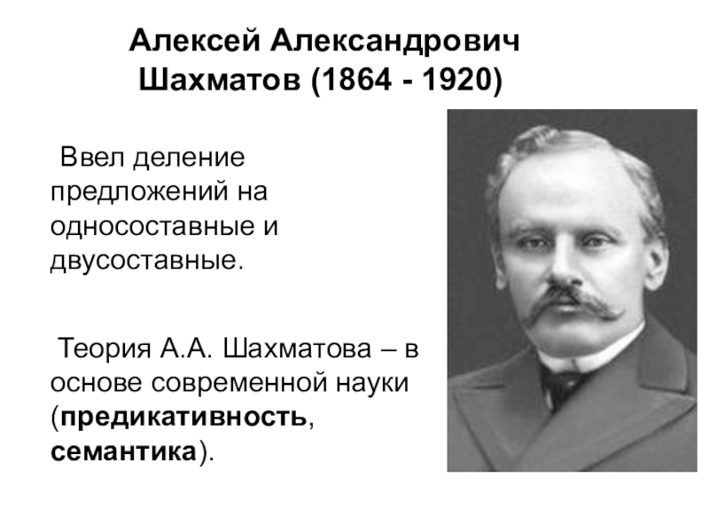 Теория А.А. Шахматова – в основе современной науки (предикативность, семантика).