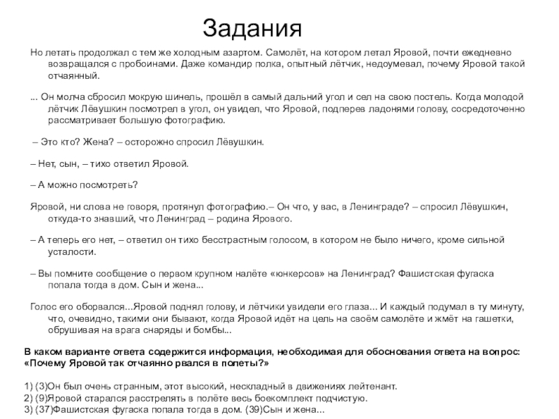 В каком варианте ответа содержится информация, необходимая для обоснования ответа на вопрос: «Почему Яровой так отчаянно рвался в полеты?»