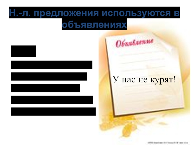 Слайд 8Н.-л. предложения используются в объявлениях