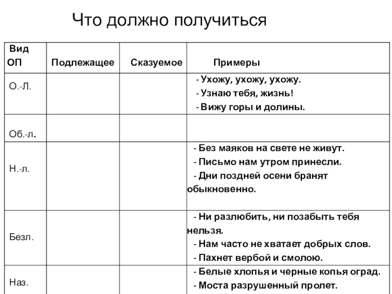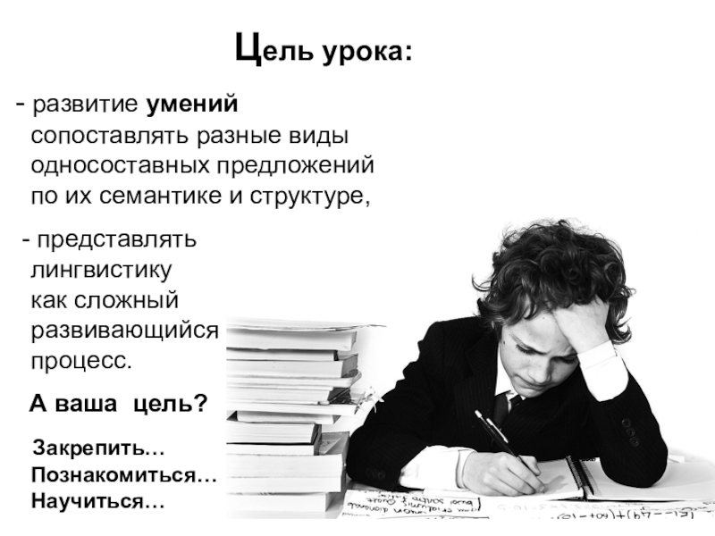 - развитие умений сопоставлять разные виды односоставных предложений
