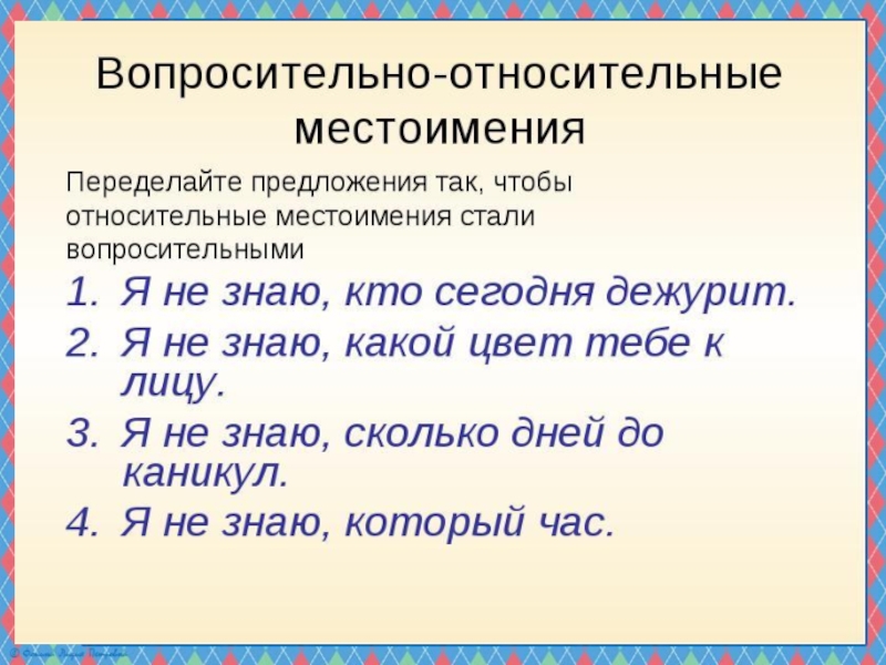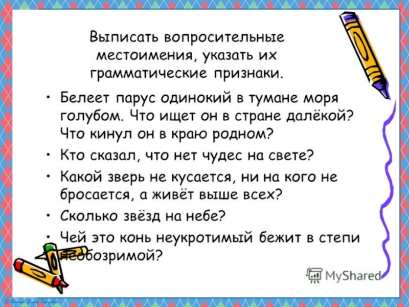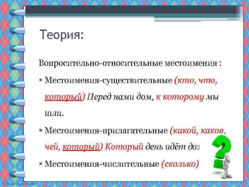Презентация по русскому языку на тему Вопросительные и относительные местоимения (6 класс) Русский язык