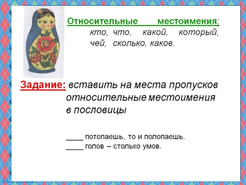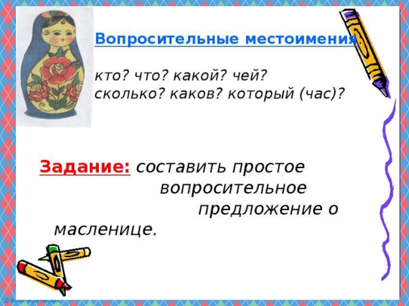 Презентация, доклад по русскому языку на тему Вопросительные и относительные местоимения (6 класс)
