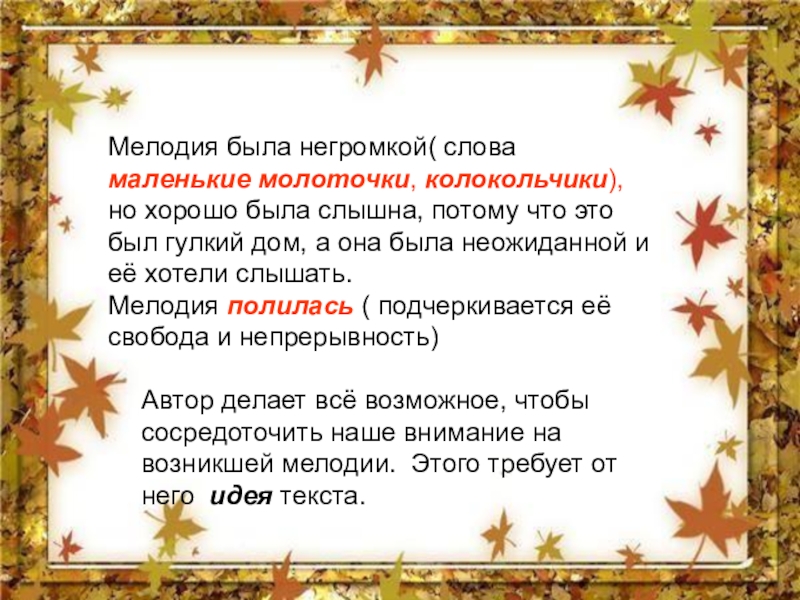 Мелодия полилась ( подчеркивается её свобода и непрерывность)