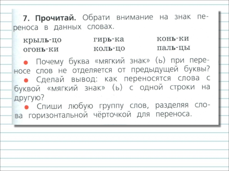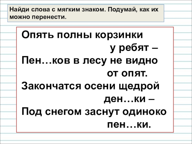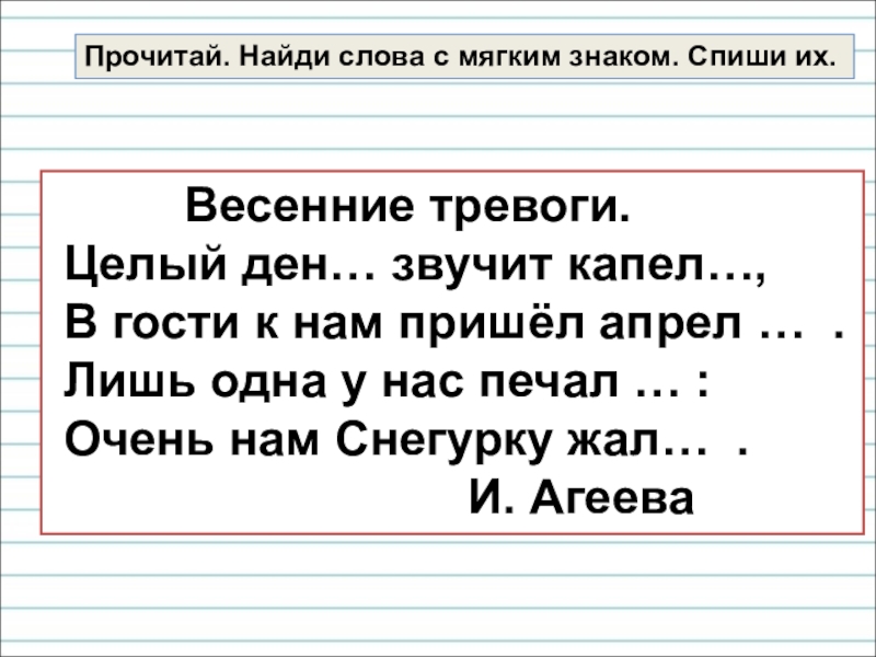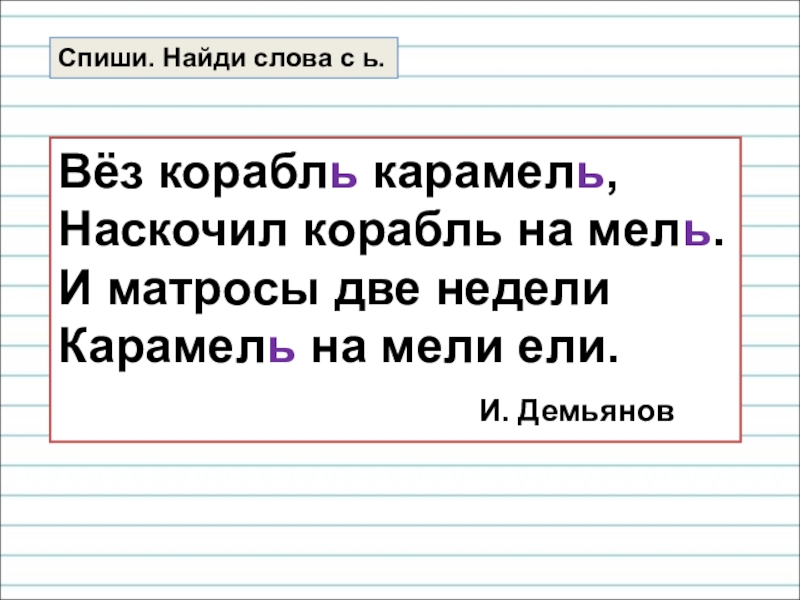 Прочитай. Найди слова с мягким знаком. Спиши их.