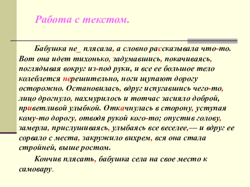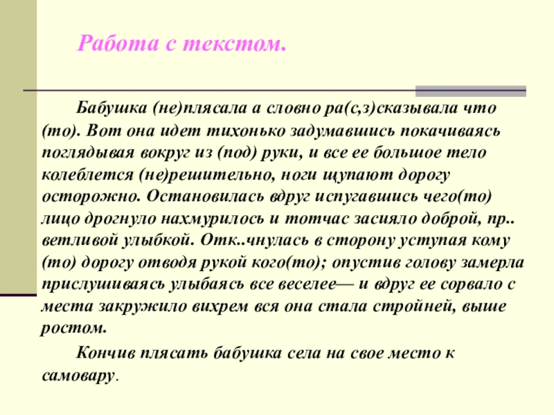 Бабушка (не)плясала а словно ра(с,з)сказывала что(то). Вот она