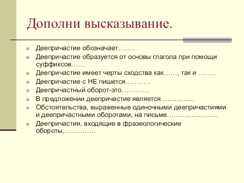 Деепричастие образуется от основы глагола при помощи суффиксов……