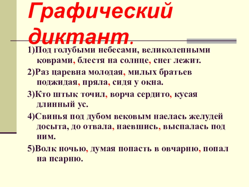 1)Под голубыми небесами, великолепными коврами, блестя на солнце, снег лежит.