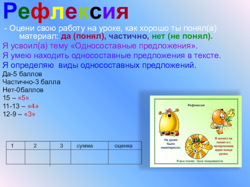 1 2 3 сумма оценка