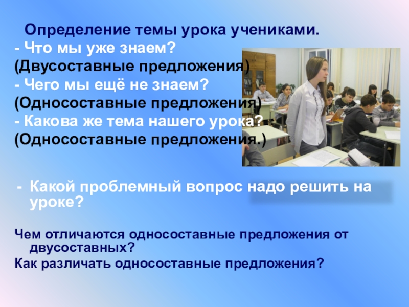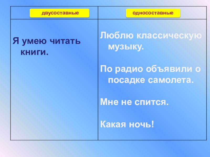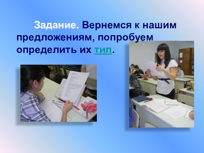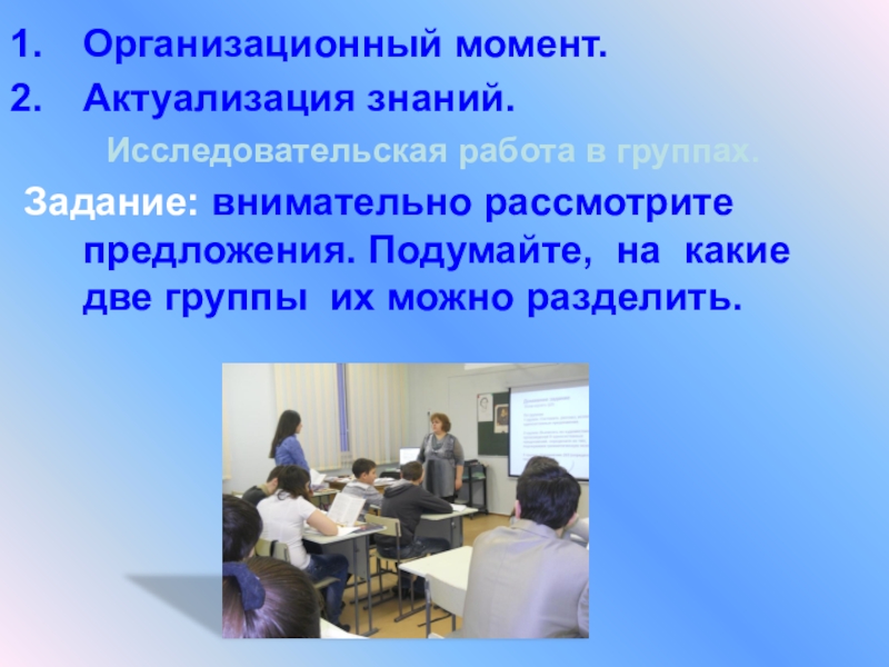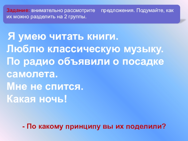 Задание: внимательно рассмотрите предложения. Подумайте, как их можно разделить на 2 группы.