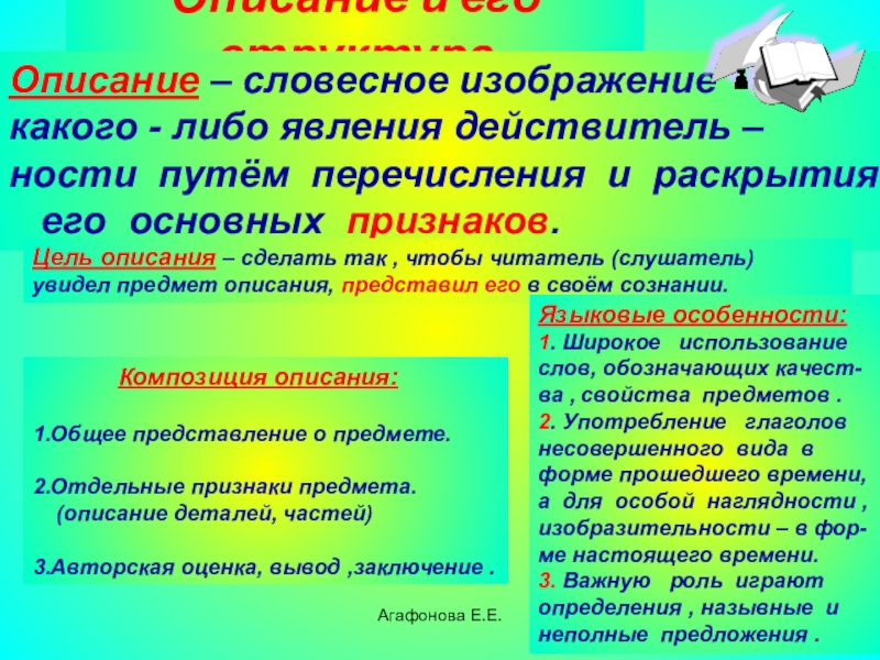 Цель описания – сделать так , чтобы читатель (слушатель)
