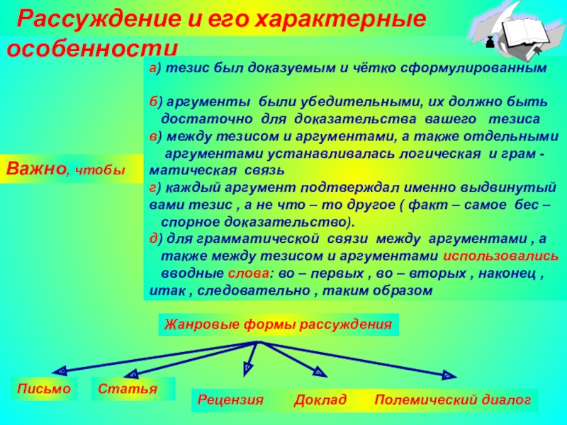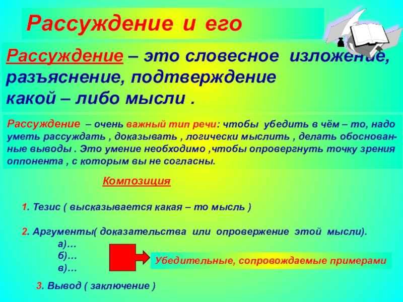 Рассуждение – очень важный тип речи: чтобы убедить в чём – то, надо