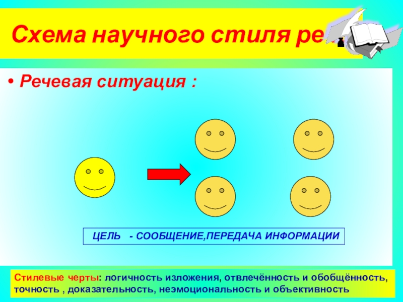 Стилевые черты: логичность изложения, отвлечённость и обобщённость,