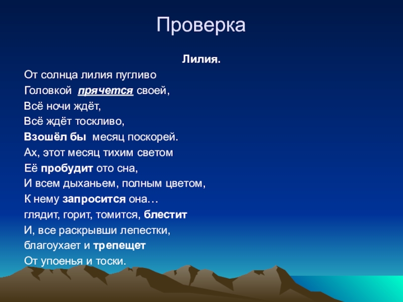 (томиться: изъяв. н., наст. вр.3 л., ед.ч.),(блестеть: изъяв. н., наст. вр.3л., ед.ч.)