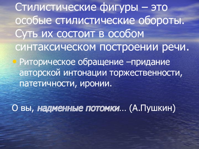 Стилистические фигуры – это особые стилистические обороты. Суть их