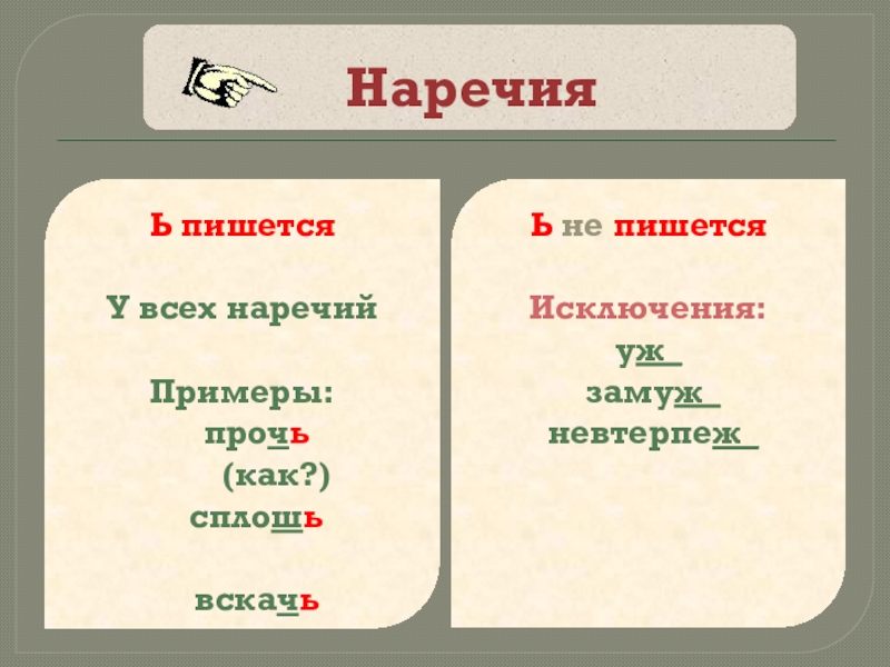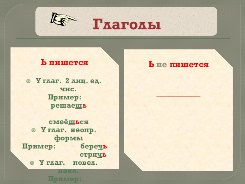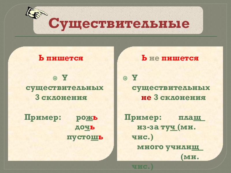 Ь знак после шипящих пишется у существительных 3 скл., у всех глаголов, наречий и частиц, кроме исключений.