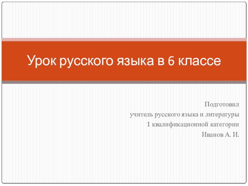 Подготовилучитель русского языка и литературы1 квалификационной категорииИванов А. И.Урок русского языка в 6 классе
