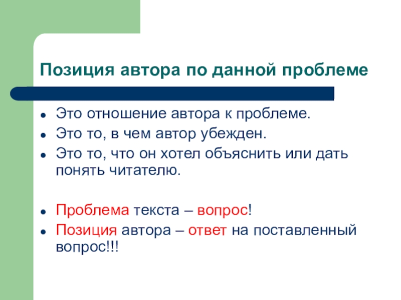 Проблема текста – вопрос, ответ на который является позицией автора!