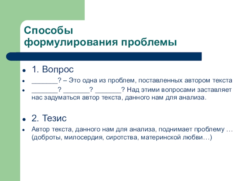 _______? _______? _______? Над этими вопросами заставляет нас задуматься автор текста, данного нам для анализа.