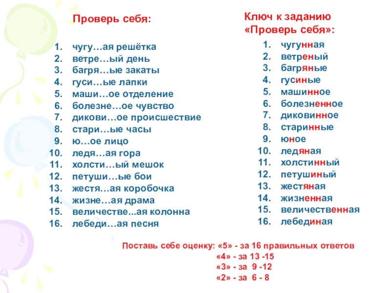 Поставь себе оценку: «5» - за 16 правильных ответов