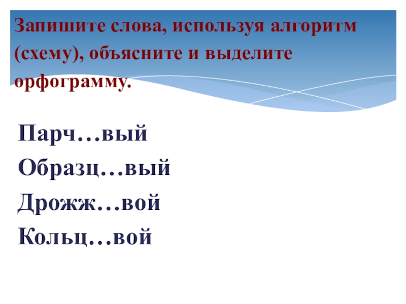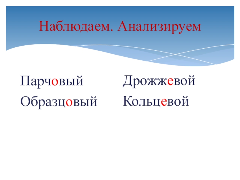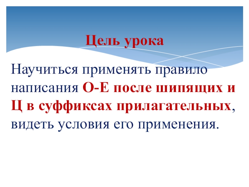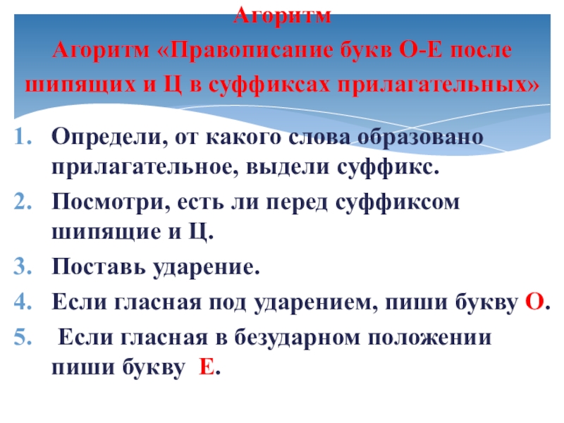 Агоритм «Правописание букв О-Е после шипящих и Ц в суффиксах прилагательных»