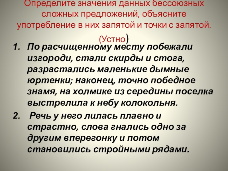 В) бессоюзное сложное предложение, между частями которого надо поставить точку с запятой