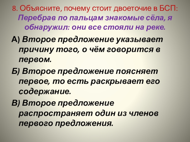 А) Второе предложение указывает причину того, о чём говорится в первом.