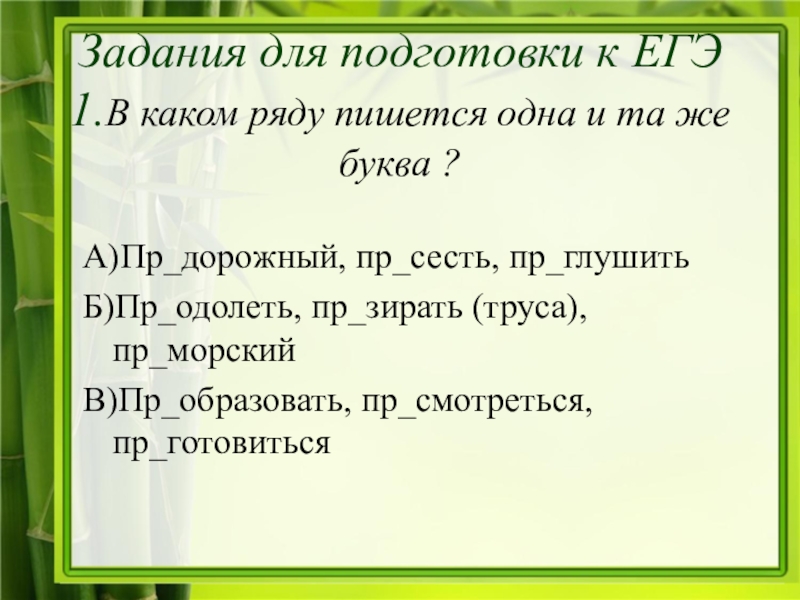 Б)Пр_одолеть, пр_зирать (труса), пр_морский