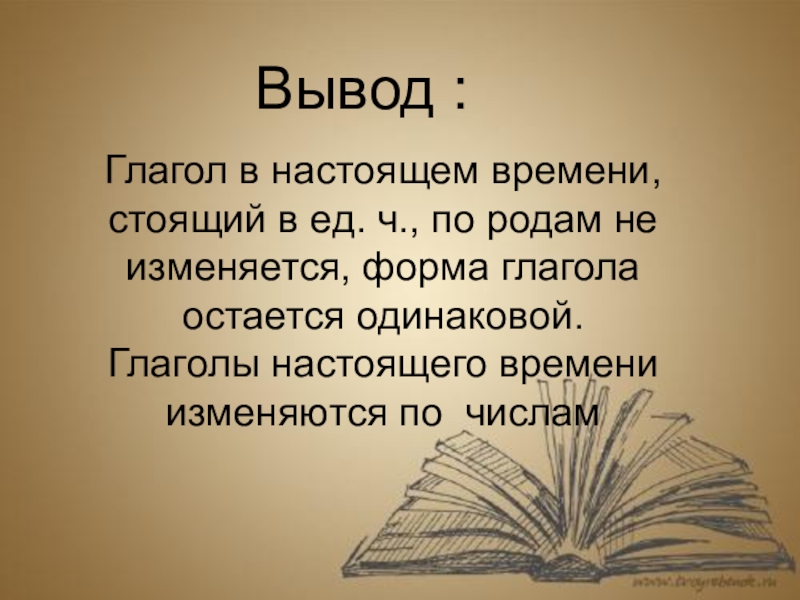 Глагол в настоящем времени, стоящий в ед. ч., по родам не изменяется, форма глагола остается одинаковой.