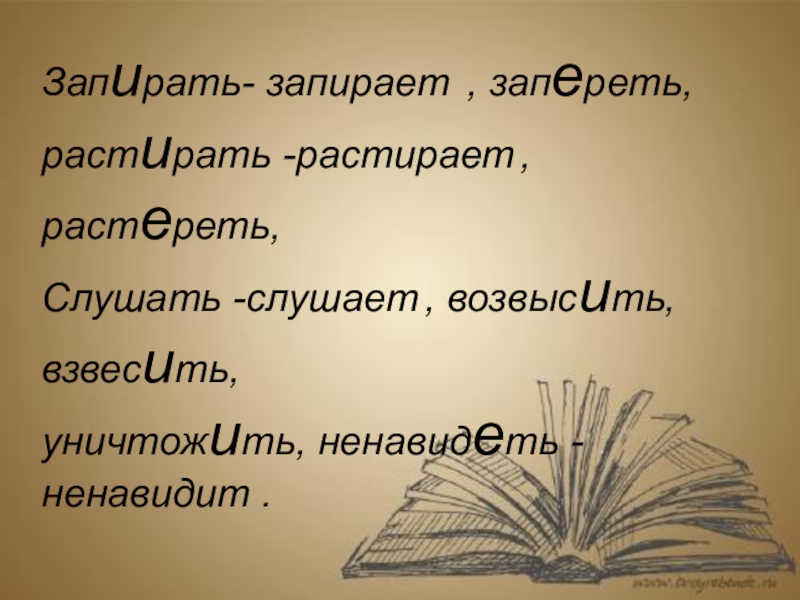 Запирать- запирает , запереть, растирать -растирает , растереть,