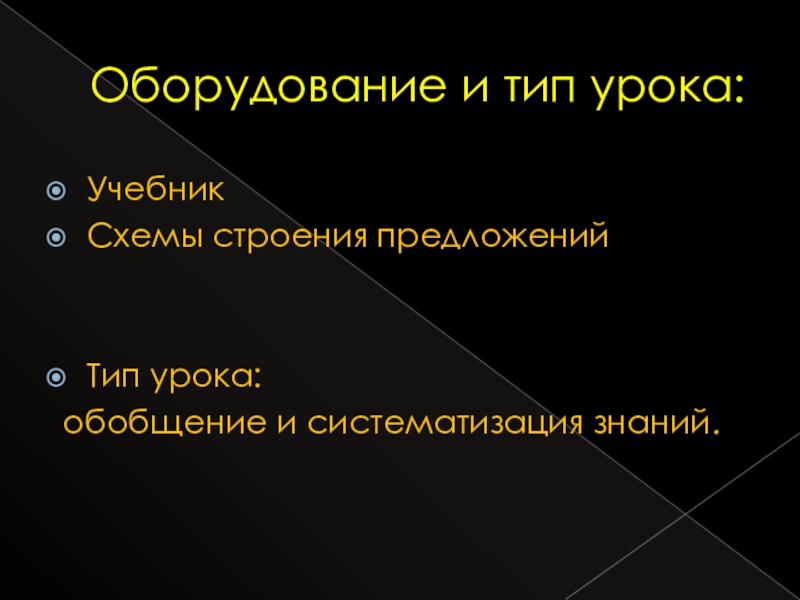 Оборудование и тип урока:Учебник Схемы строения предложенийТип урока: обобщение и систематизация знаний.