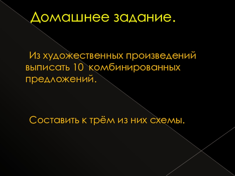 Домашнее задание.    Из художественных произведений выписать 10 комбинированных предложений.