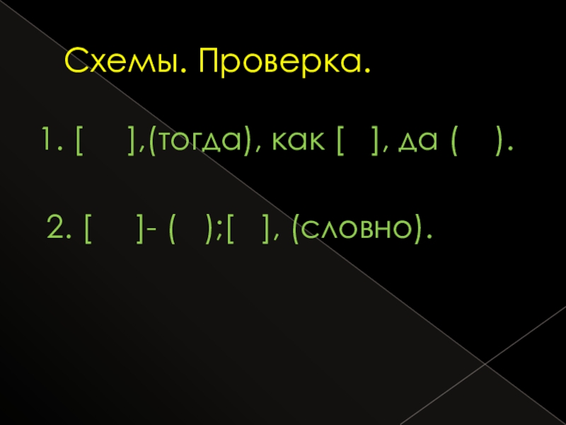 Схемы. Проверка. 1. [   ],(тогда), как [  ], да (  ).