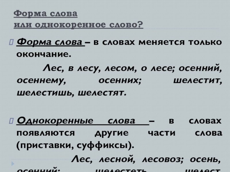 Форма слова  или однокоренное слово?Форма слова – в словах меняется только окончание.