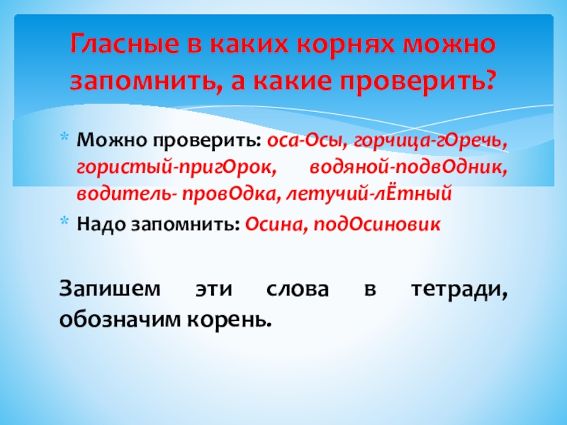 Гласные в каких корнях можно запомнить, а какие проверить?