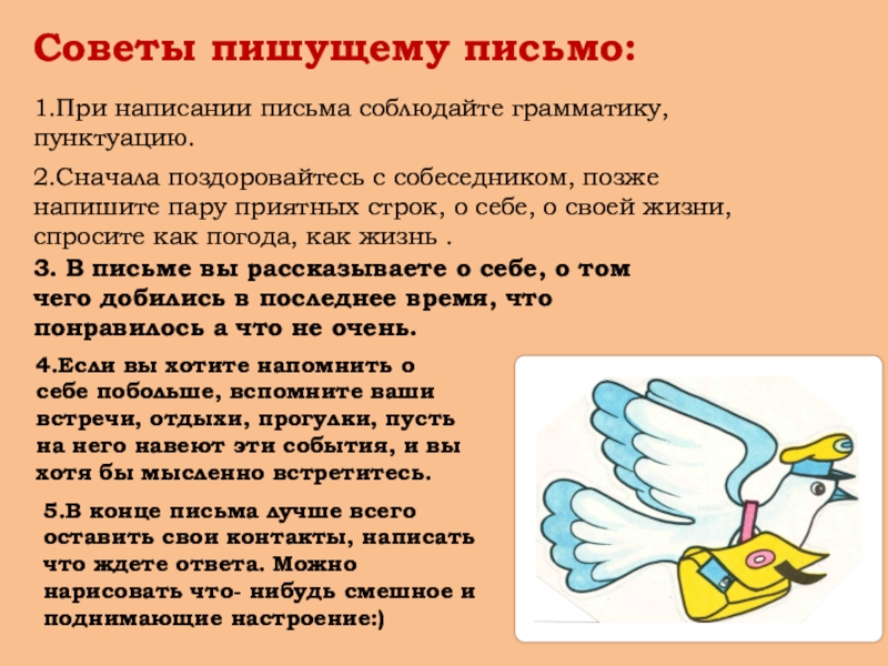 3. В письме вы рассказываете о себе, о том чего добились в последнее время, что понравилось а что не очень.