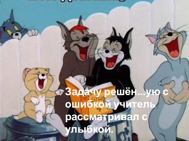 Слайд 7Задачу решён...ую с ошибкой учитель рассматривал с улыбкой.