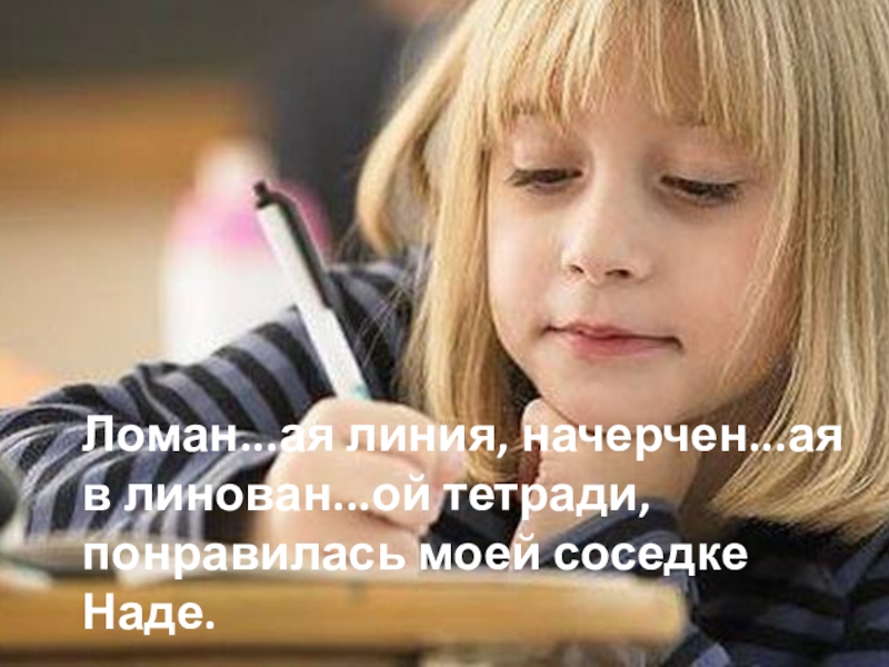 Слайд 6Ломан...ая линия, начерчен...ая в линован...ой тетради, понравилась моей соседке Наде.