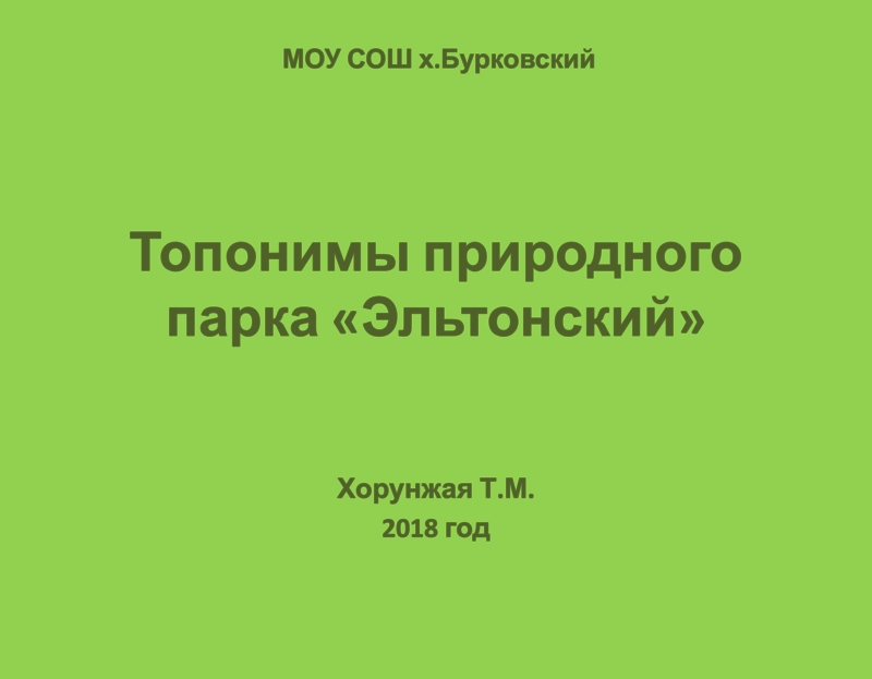 Объект исследования -топонимическая система природного парка «Эльтонский».