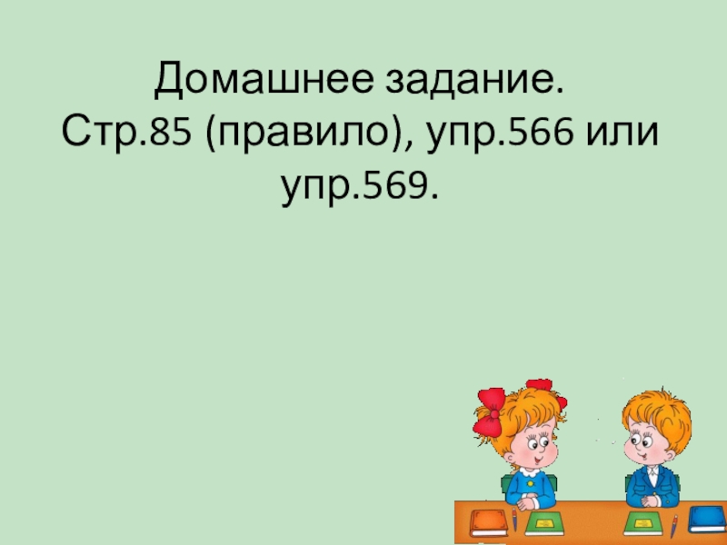 Слайд 17Домашнее задание. Стр.85 (правило), упр.566 или упр.569.
