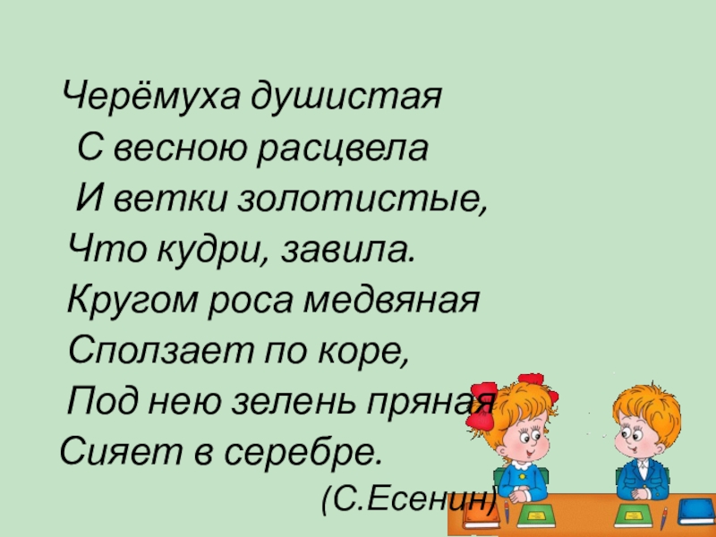 Черёмуха душистая   С весною расцвела   И ветки золотистые,