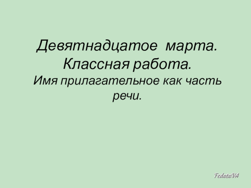 Слайд 3Девятнадцатое марта. Классная работа. Имя прилагательное как часть речи.