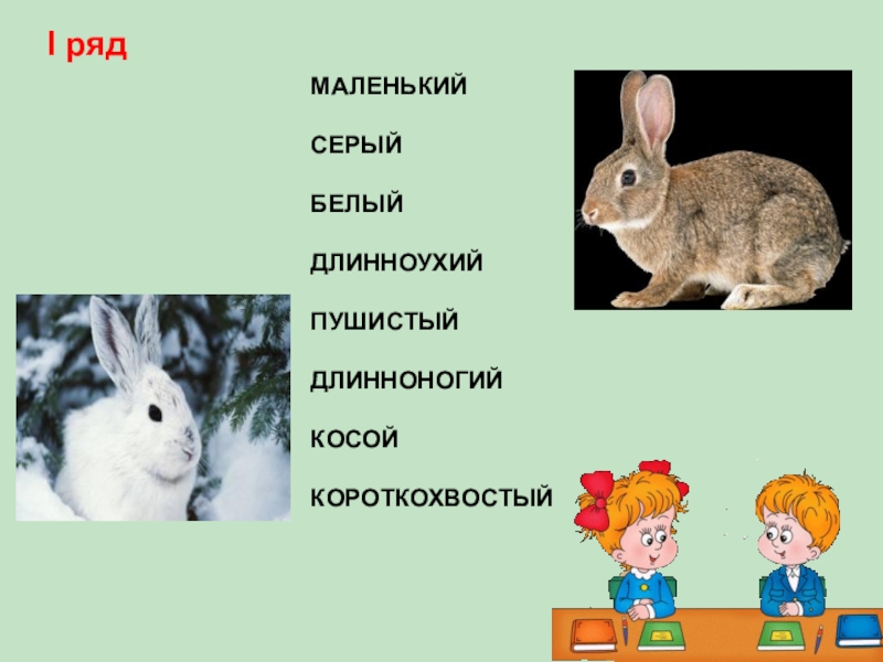 МАЛЕНЬКИЙСЕРЫЙБЕЛЫЙДЛИННОУХИЙПУШИСТЫЙДЛИННОНОГИЙКОСОЙКОРОТКОХВОСТЫЙI ряд