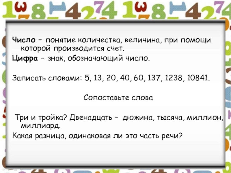 Три и тройка? Двенадцать – дюжина, тысяча, миллион, миллиард.
