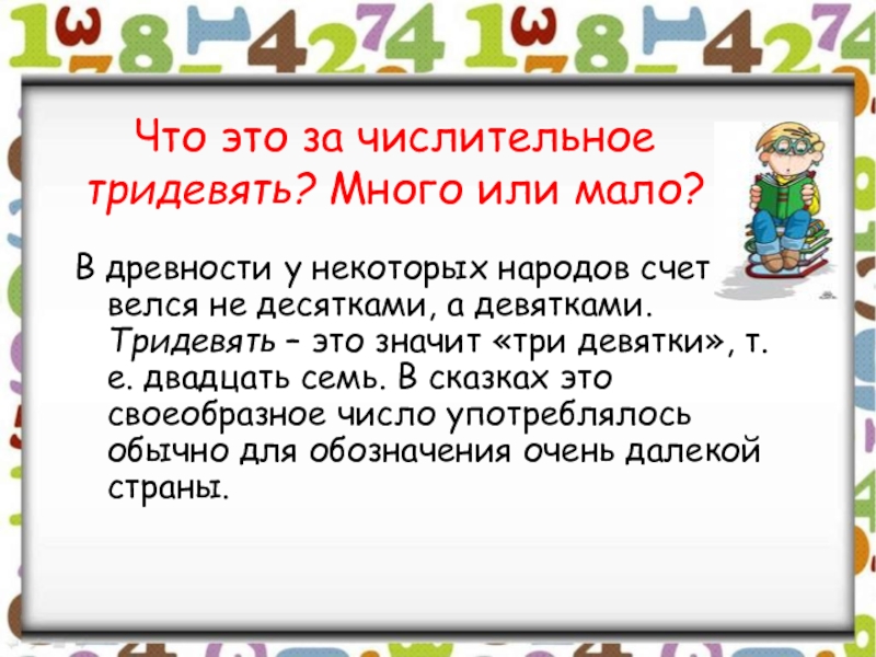 Слайд 9Что это за числительное тридевять? Много или мало?