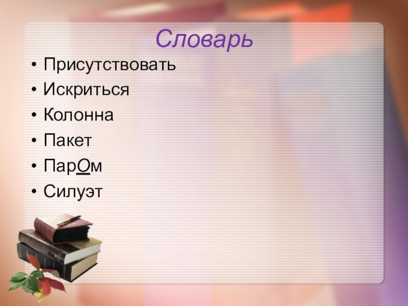 Словарь ПрисутствоватьИскритьсяКолоннаПакетПарОмСилуэт