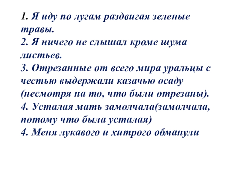 Слайд 10 1. Я иду по лугам, раздвигая зеленые травы.