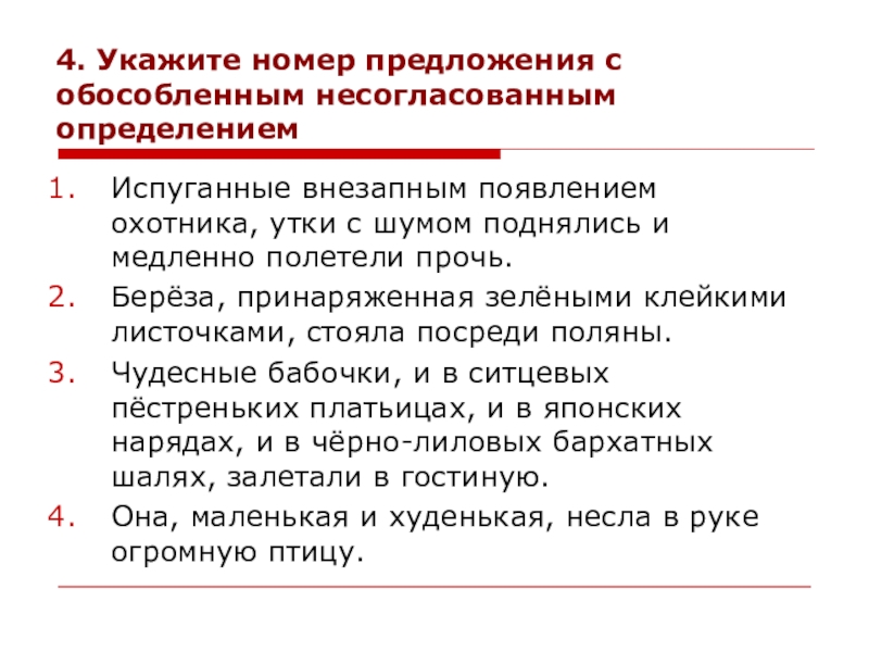 Слайд 184. Укажите номер предложения с обособленным несогласованным определением
